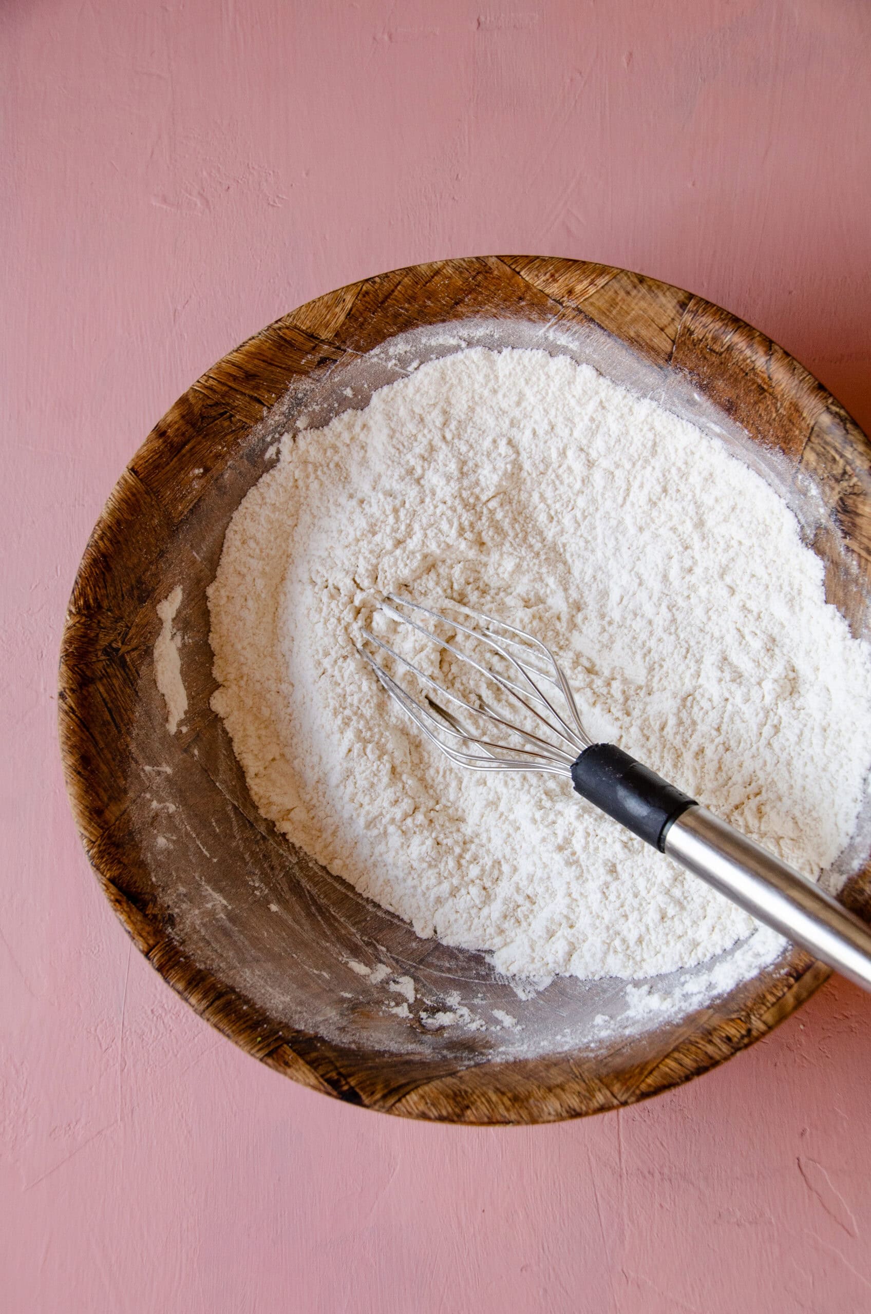 4. Mix together all the dry ingredients. (If I’m short on time and don’t want to do extra dishes, I dump it all into the first bowl and mix it together on top — the goal overall is to avoid any salty or baking soda bites.)